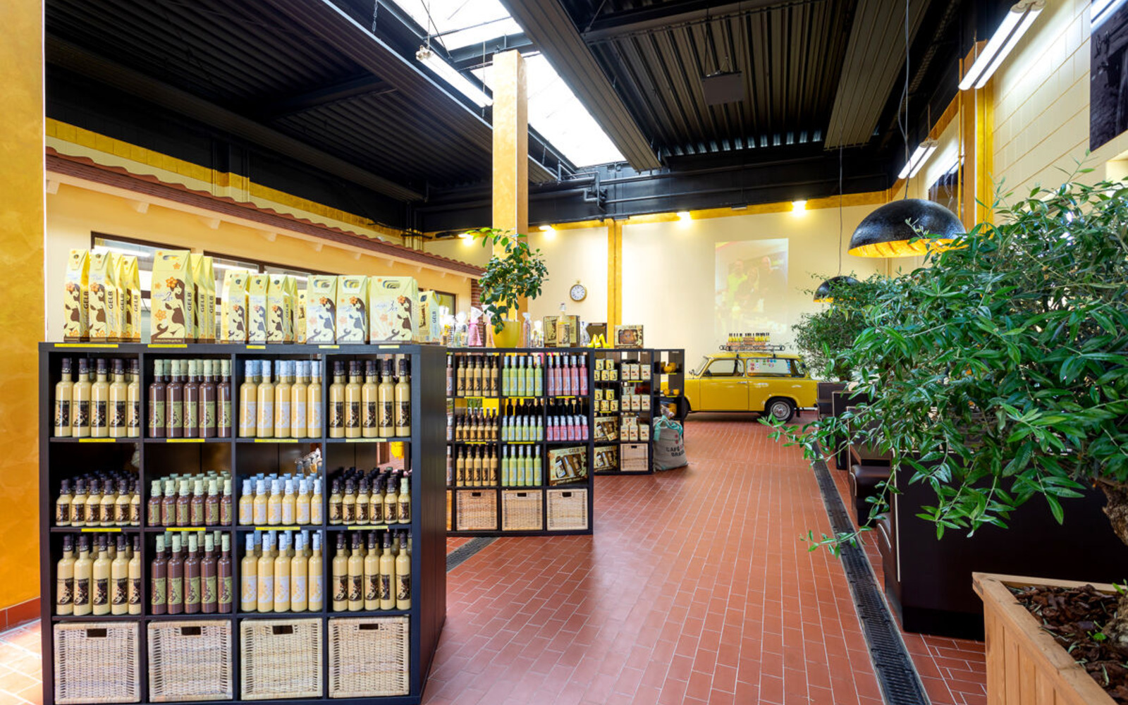 Likérka scharfesGELB ze Senftenbergu dobývá se svými produkty celé Německo. Místní vaječný likér se vyrábí v nejrůznějších chuťových variantách. Sortiment krémového lužického likéru sahá od klasiky přes čokoládovou či jahodovou až po perníkovou příchuť. Své fanoušky si v Německu nacházejí i různé sezónní příchutě a exportují se již také do zahraničí. Všechny příchutě ochutnáte a zakoupíte v podnikové prodejně scharfesGelb v Senftenbergu, přímo vedle stáčírny. V nabídce jsou rovněž doplňky jako sklenice, nálevky, drobné suvenýry a dárkové balíčky či trička s logem likérky. K dostání jsou též čokoládové pralinky a marmelády s vaječným likérem. Na prodejnu navazuje také útulná kavárna, kde návštěvníci mohou ochutnat zákusky a různé kávové speciality s vaječným likérem. Po předchozí domluvě jsou možné prohlídky manufaktury pro skupiny od 10 osob. Ty je možné rezervovat také včetně ochutnávky, občerstvení s kávou nebo plněním vlastních láhví.