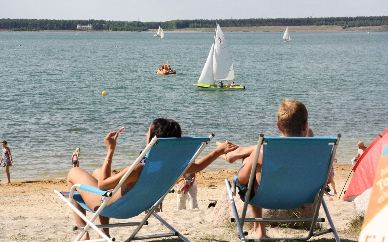 Veřejná pláž u jezera Geierswalder See