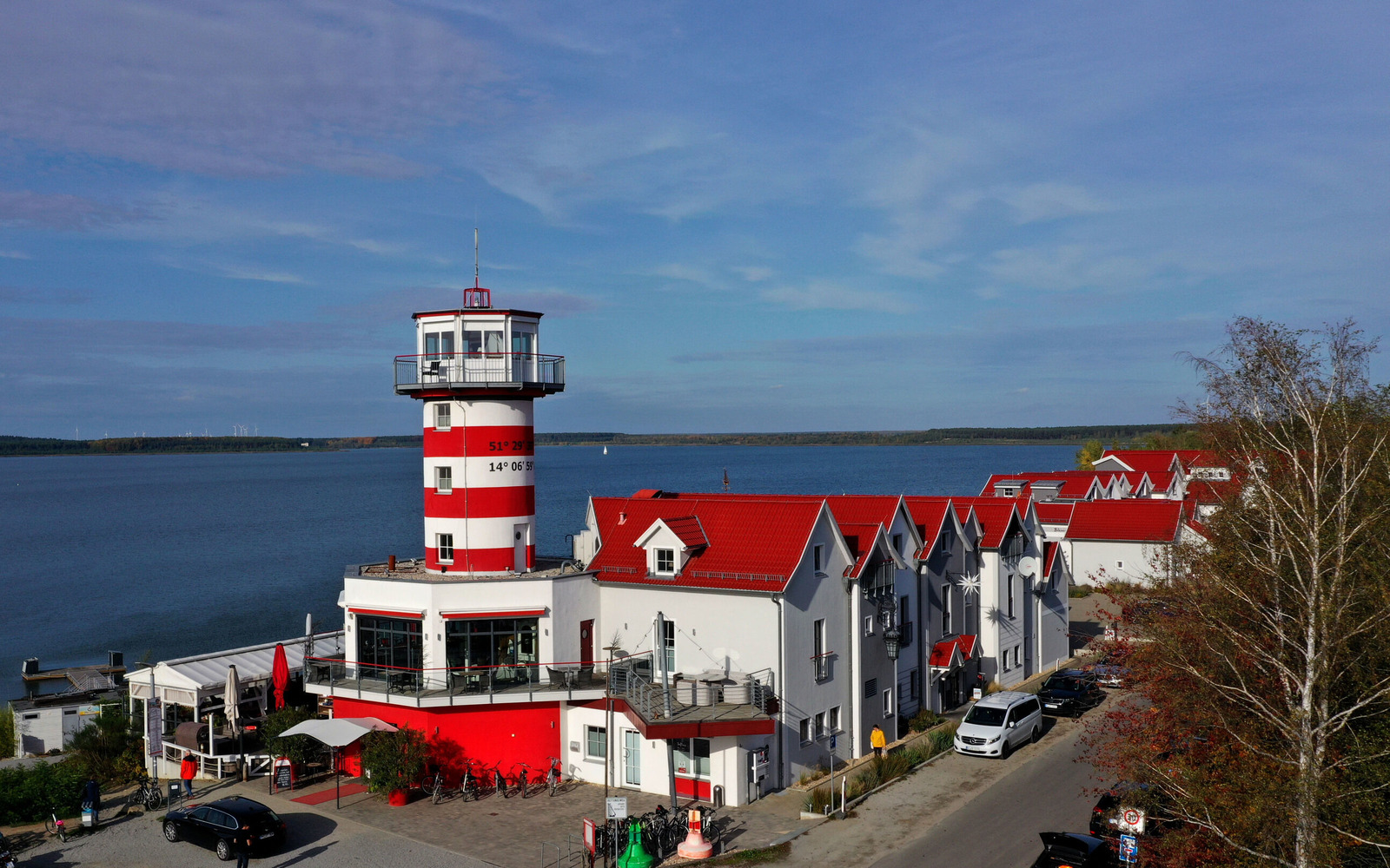 Der Leuchtturm-Hotel-Komplex liegt direkt am Geierswalder See. Das Vier-Sterne-Hotel verfügt über Suiten, Doppelzimmer, Ferienwohnungen und Ferienhäuser. Hinzu kommt das ganztägig geöffnete Restaurant "MehrSeen" und eine privat-gemütliche Sauna-Landschaft.
