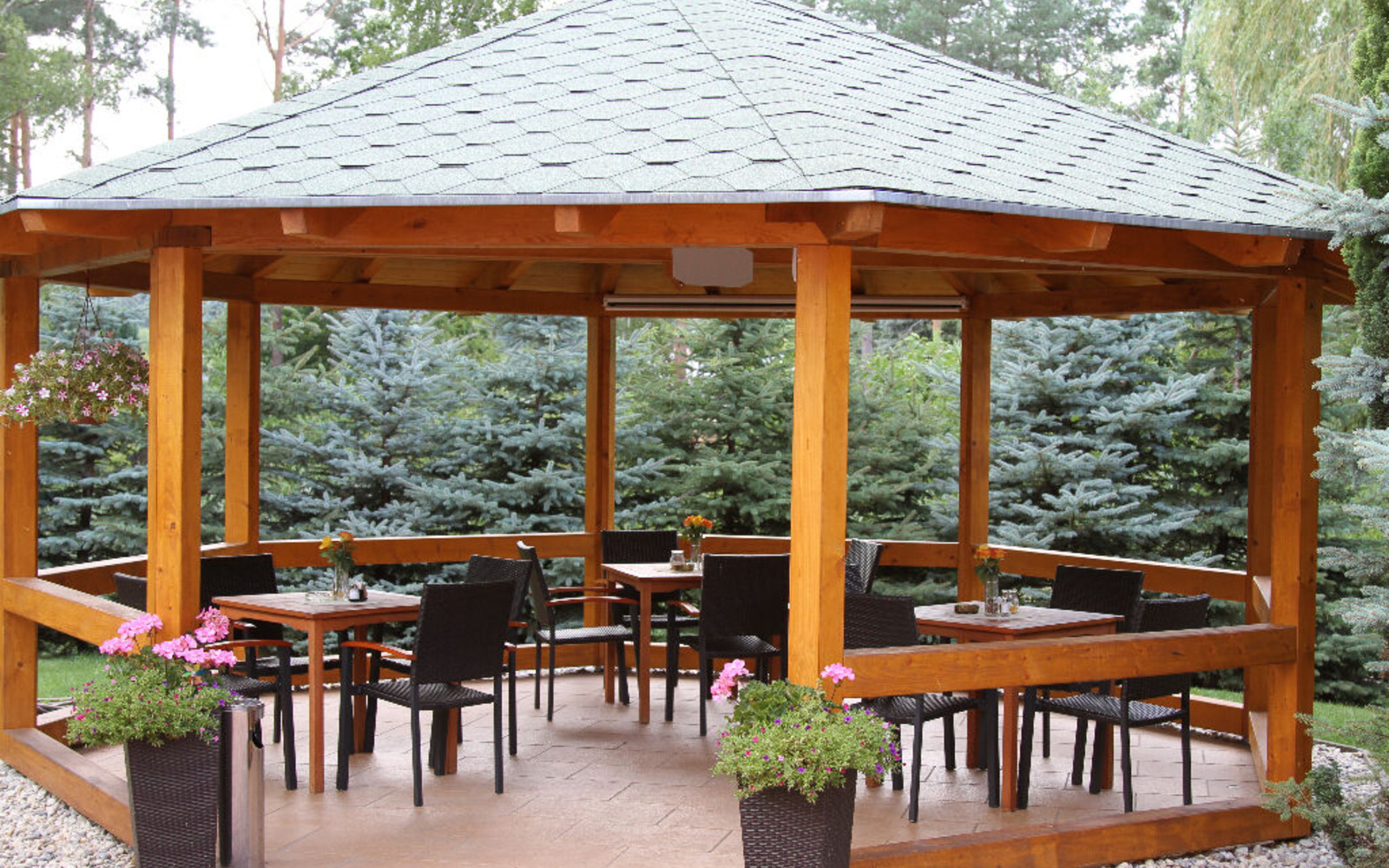 Die modern gestalteten Gasträume bieten Platz für 50 Personen. In einem Saal mit Kamin und einem zusätzlichen, modern ausgestatteten Raum können weitere 50 beziehungsweise 35 Personen bewirtet werden. Auf der Terrasse mit angrenzendem Pavillon finden im Sommer zusätzlich bis zu 60 Personen Platz.