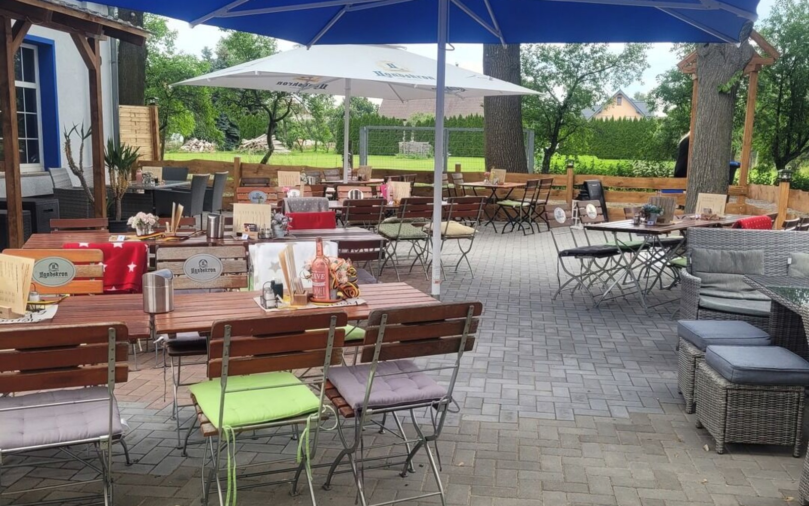 Der großzügige Biergarten unter schattigen Bäumen lädt besonders an warmen Tagen zum Verweilen ein. Das Restaurant ist kinderfreundlich, Hunde sind willkommen. Dartspiele sind gegen Aufpreis möglich.