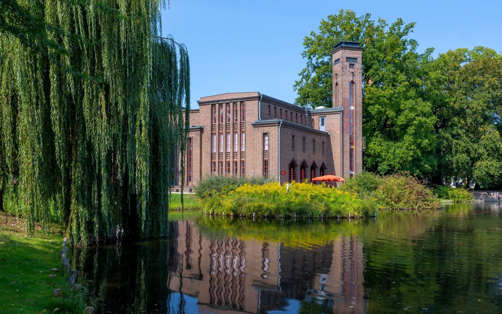 Brandenburgisches Landesmuseum für moderne Kunst Cottbus - Blick auf das Museum vom Park, Foto: Marlies Kross, Lizenz: Brandenburgische Kulturstiftung