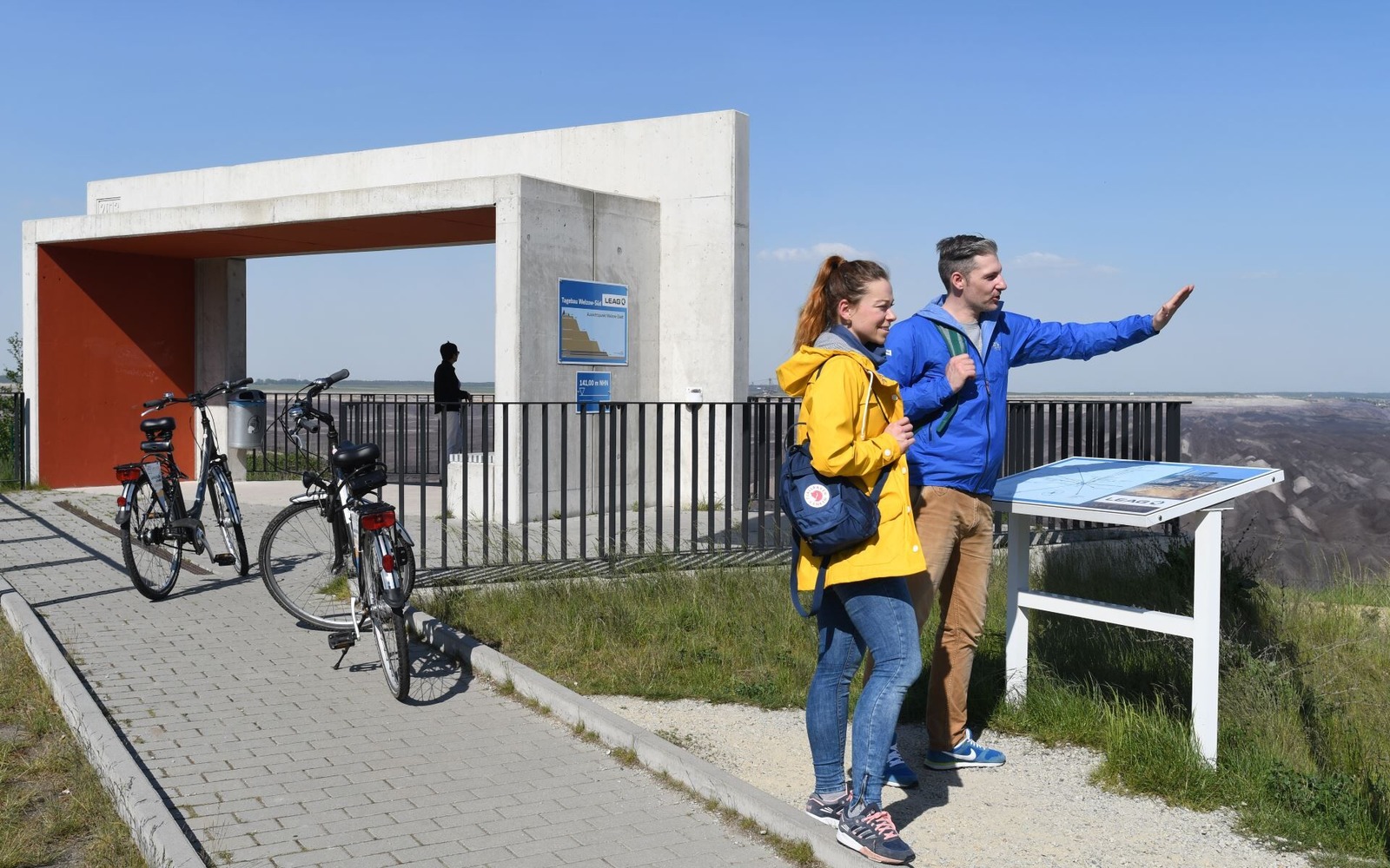 Mehrere Aussichtspunkte am Tagebaurand eröffnen den Blick auf den Tagebau sowie die rekultivierte Landschaft. Einen Blick in das Kohlflöz wird am Aussichtspunkt "Süd" ermöglicht, hier kann man die Förderbrücke F60 und weitere Abraumbagger bei der Arbeit bestaunen. Hingegen beim Welzower Fenster und am Aussichtspunkt Wolkenberg die Renautierung und sogar auch einen Weinberg bestaunen kann. An allen Punkten sind Informationen zur Geologie, zur Technologie der Kohleförderung zu finden. Weitere Aussichtspunkte sind die Steinitzer Treppe und Gut Geisendorf.