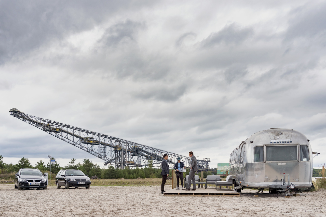 Vor der Kulisse einer riesigen Stahlkonstruktion am Ufer eines Sees stoßen die Ermittler auf die Leiche eines Mädchens. Der Stahlkoloss ist in Wirklichkeit einer der eindrucksvollsten Zeitzeugen der Region: die Abraumförderbrücke F60 – 11 000 Tonnen schwer, 500 Meter lang, die größte bewegliche Arbeitsmaschine der Welt. Nach dem Ende der Kohleförderung an dieser Stelle sollte sie eigentlich gesprengt werden. Engagierten ist es zu verdanken, dass sie als Besucherbergwerk eine neue Bestimmung fand. Heute geben Bergwerksführer auf Rundgängen Einblicke in die Industriegeschichte der Region und nehmen Besucher mit hinauf auf 74 Meter Höhe.Das findet auch in der Serie so statt. Bei einer richtigen Führung bekommen alle Gäste aus Sicherheitsgründen aber auch einen Helm auf - viel authentischer! Höhepunkt ist ein Abendessen mit Bergmannsbrett in luftiger Höhe, das „F60 Dinner“.