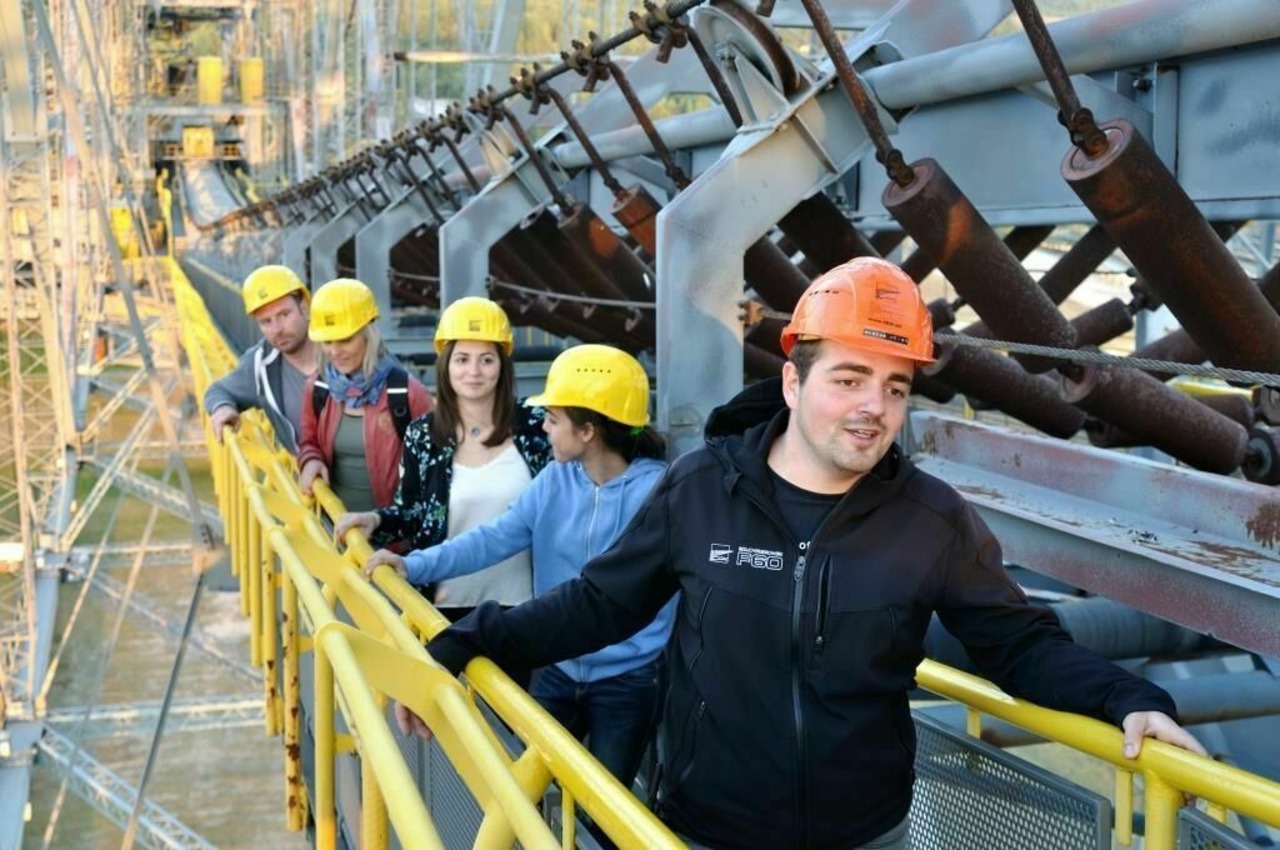 Noch eindrücklicher ist eine geführte Tour mitten hinein in die apokalyptische Szenerie. Im Mannschaftstransportwagen geht es über holprige Tagebaustraßen bis hinab zum Kohleflöz und ganz dicht heran an die gigantischen Fördermaschinen im vollen Betrieb. Die kürzeste Tour des Anbieters Excursio dauert zwei Stunden. Längere Ausflüge beinhalten neben der Besichtigung des Tagebaus auch eine Bergmannsvesper.