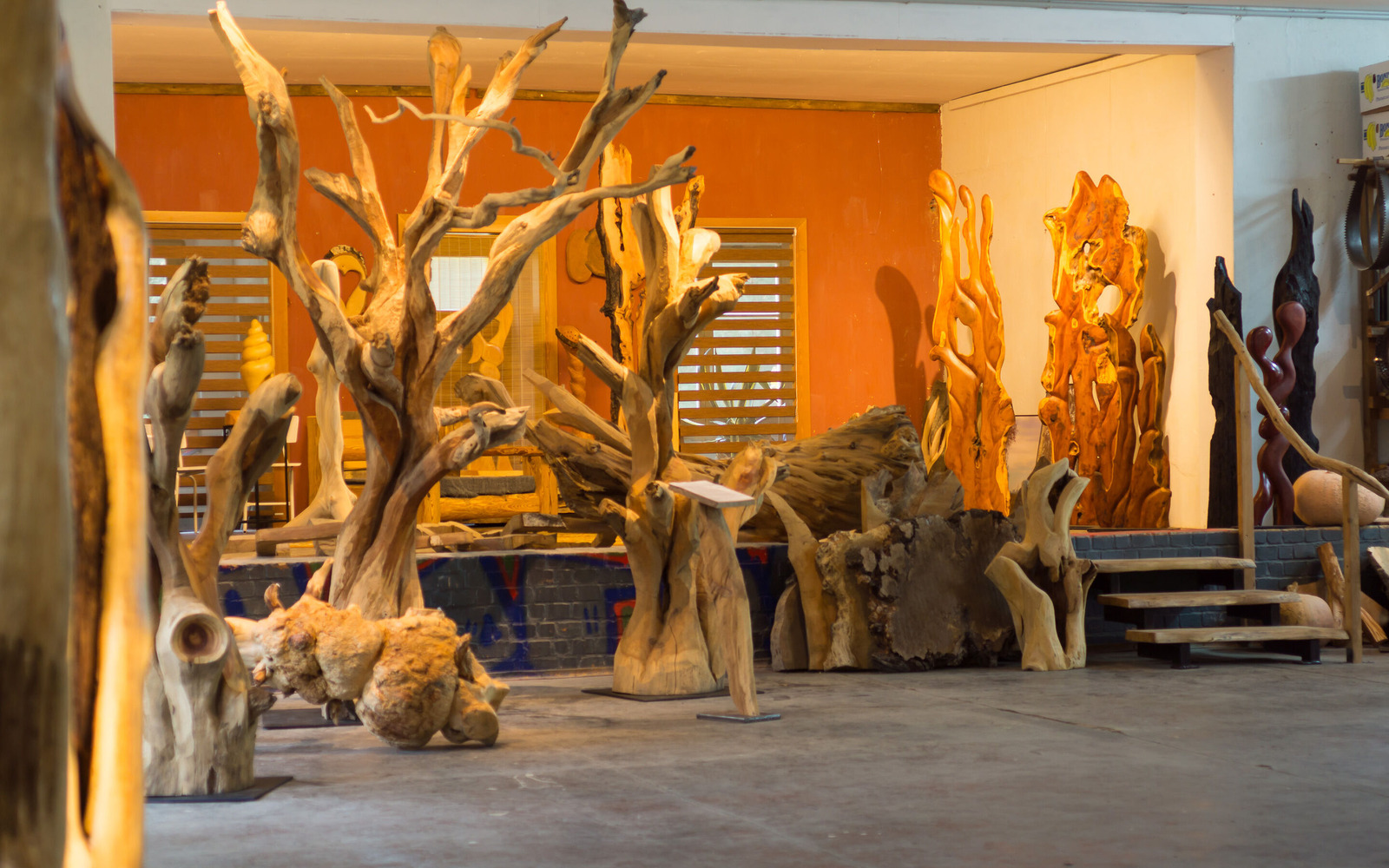 Die uralten knorrigen Stämme aus Fürst Pückler's Park und Urwald sind das Medium aus dem Thomas Schwarz seine einmaligen Kunstwerke entstehen lässt. Zudem nutzt er exklusive Hölzer, um edle Stelen und Reliefarbeiten zu fertigen. Ob Figurbetont realistisch oder Abstrakt - immer steht die Seele des gebenden Baumes im Mittelpunkt. Eine außergewöhnliche Holzsammlung von mehreren hundert Baumarten sowie viel Kurioses, zum Thema Holz, machen den Besuch in seinem Atelier zu einem Erlebnis.