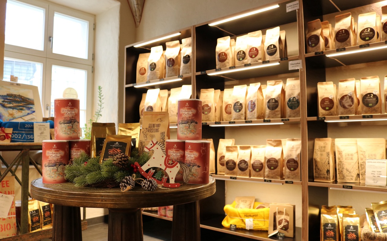 Kaffeerösterei Markt 15 mit weihnachtlichem Arrangement, Foto: Rebecca Bartsch