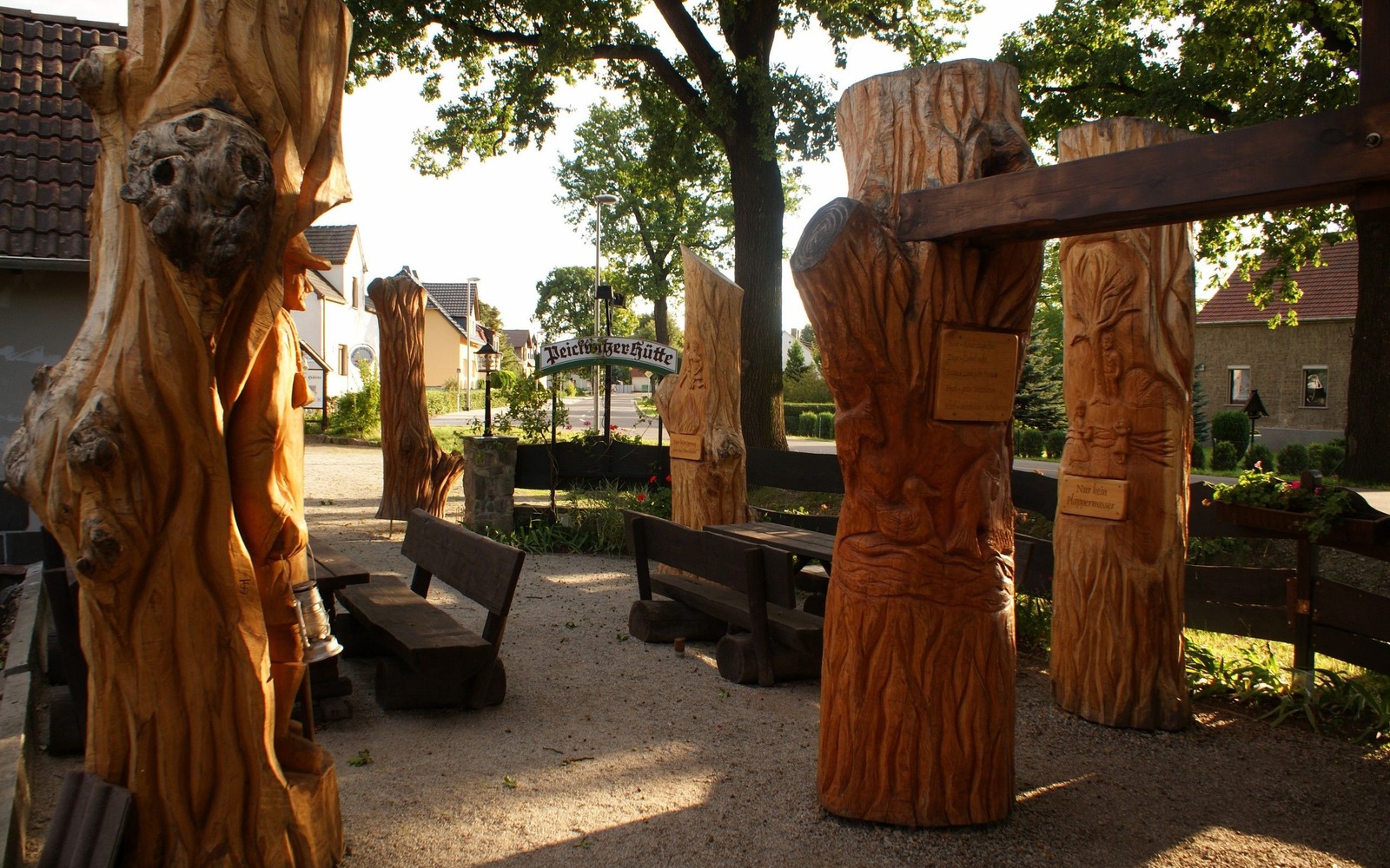 Die ”Hütte“, wie die familienbetriebene Gaststätte liebevoll genannt wird, bietet nicht nur kulinarisch etwas Besonderes: In jahrelanger Arbeit wurde das Gebäude mit dem heimeligen Kamin, den rustikalen Holzmöbeln und den hell verputzten Wänden aus Materialien der Region erbaut. Im angeschlossenen Biergarten erzählen die Kunstwerke aus über 100-jährigen Eichenstämmen ihre eigene Geschichte über den Ort Peickwitz.