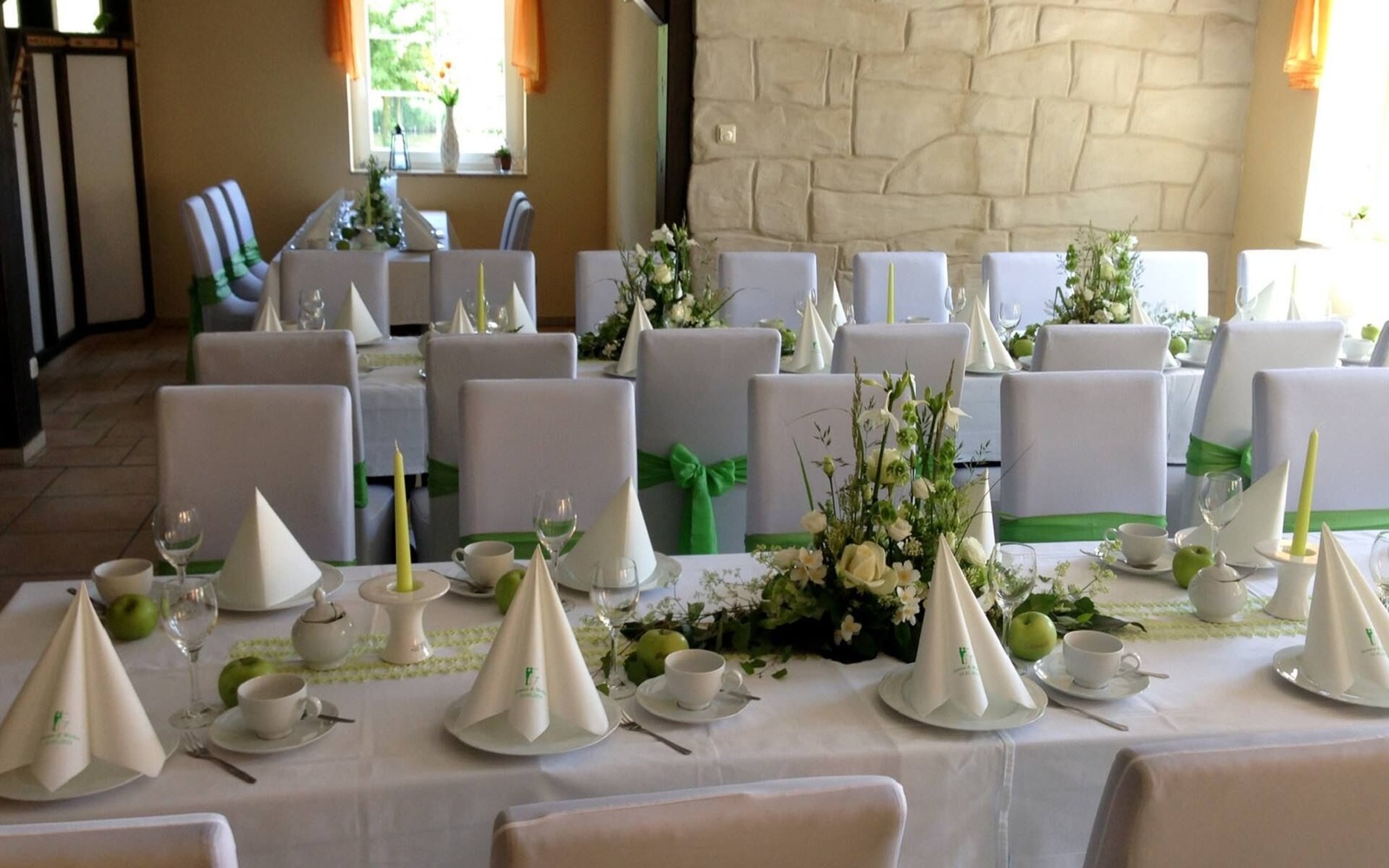 Im Innenbereich der Gaststätte können Familienfeiern, Hochzeiten oder Geburtstage mit bis zu 80 Personen gefeiert werden. Im Tagesgeschäft finden bis zu 90 Personen ihren Platz. Im Außenbereich mit Terrasse und Wintergarten der geöffnet werden kann, können ca. 60 Personen bewirtet werden. In der Zeit vom Herbst bis in das Frühjahr, kann der Wintergarten mit einer Glasfront geschlossen und beheizt werden, sodass kleinere Feiern mit bis zu 30 Personen darin stattfinden können.