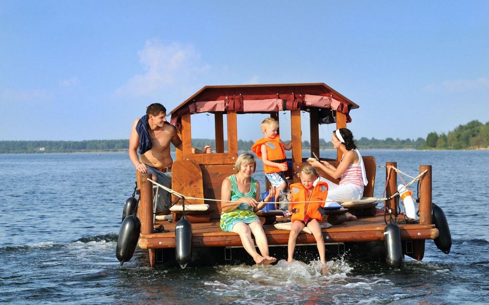 Für das Freizeiterlebnis stehen Zorbing Bälle, verschiedene Spaßboote, Paddel,- Tret,- Segel- und Motorboote, Flöße und Hausboote oder Fahrräder zur Ausleihe zur Verfügung.