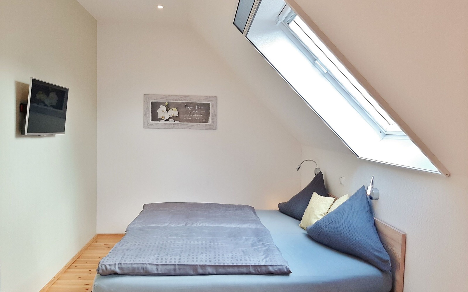 Der Ferienhof besteht aus 2 Ferienhäusern mit insgesamt 3 großzügigen, komfortablen Ferienwohnungen, die mit 4 Sternen klassifiziert sind. Das Feriendoppelhaus mit 2 identischen Ferienwohnungen (je 35 m²) ist für jeweils 2 Personen ausgelegt, es eignet sich daher auch gut für befreundete Paare. Beide Ferienwohnungen verfügen im Wohnbereich über eine modern integrierte Küchenzeile, Essbereich und eine Eckcouch. In der oberen Etage befindet sich eine offene Galerie mit einem Doppelbett und großen Kleiderschrank, der ideale Platz zum Träumen.