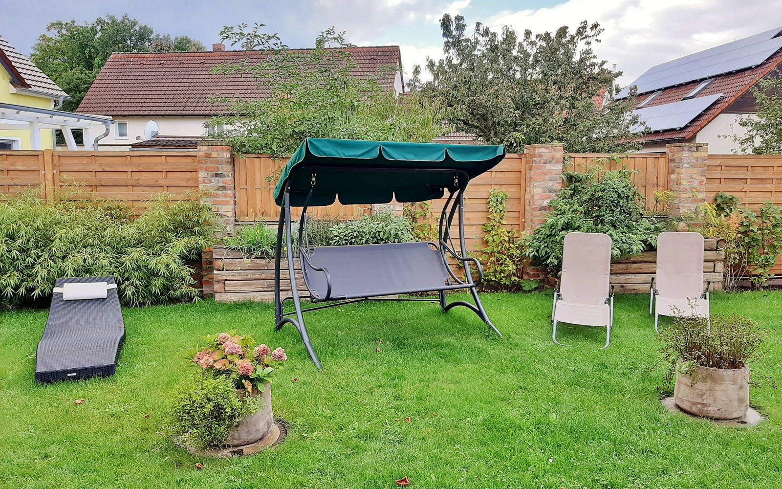 Im großen Ferienhaus (55 m²) finden bis zu 4 Personen Platz und ist im Erdgeschoss barrierefrei begehbar. Das Haus besitzt einen Wohnbereich mit integrierter Küchenzeile, einem großen modernen Badezimmer mit Dusche sowie 2 Schlafräumen im Obergeschoss. Jede Ferienwohnung verfügt über eine eigene Terrasse mit Sitzmöglichkeiten. Pkw- und Fahrradstellplätze sind für Gäste vorhanden.