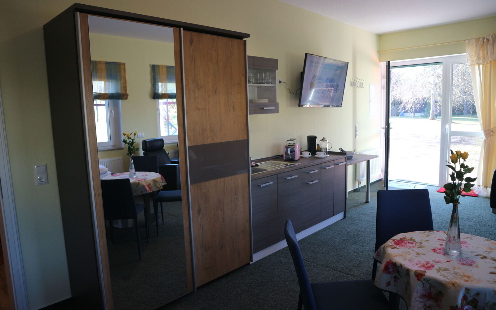 Sollten Sie mobilitätseingeschränkt sein, erreichen Sie über einen barrierefreien Zugang unser behindertenfreundlich eingerichtetes Zimmer sowie den Gastraum.