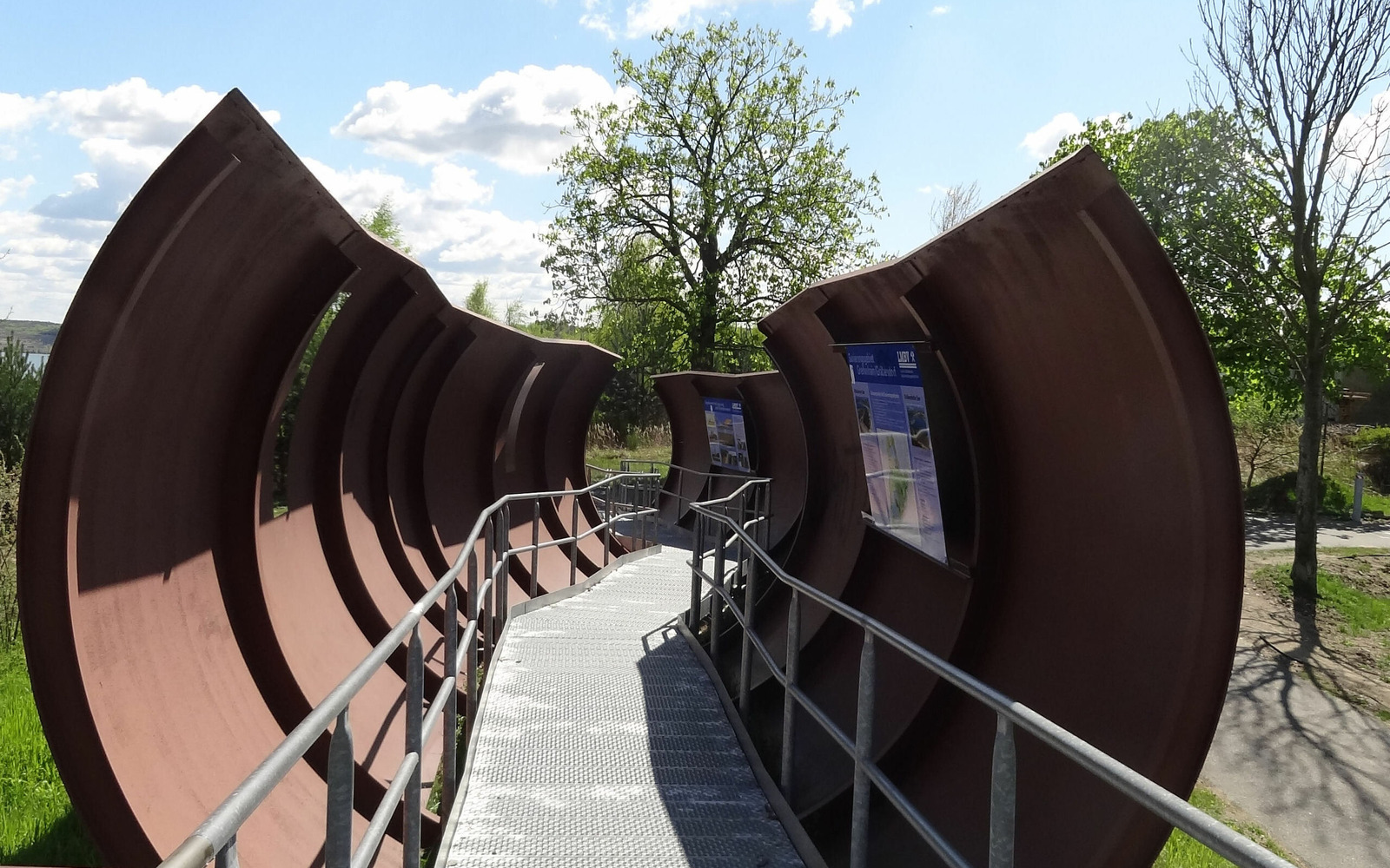 Der Aussichtspunkt "Randriegel" am künftigen Altdöberner See erinnert an die bergbauliche Vergangenheit der Region und gibt den Blick frei auf den in Flutung befindlichen See. Die Gestaltung ist einem überdimensionierten Randriegel nachempfunden, einer Entwässerungsleitung zur Trockenlegung des Tagebaus. Informationstafeln im Inneren des Randriegels stellen den Vorgang der Entwässerung, die erlebbaren Sanierungsarbeiten und die Entwicklung des Altdöberner Sees vor.