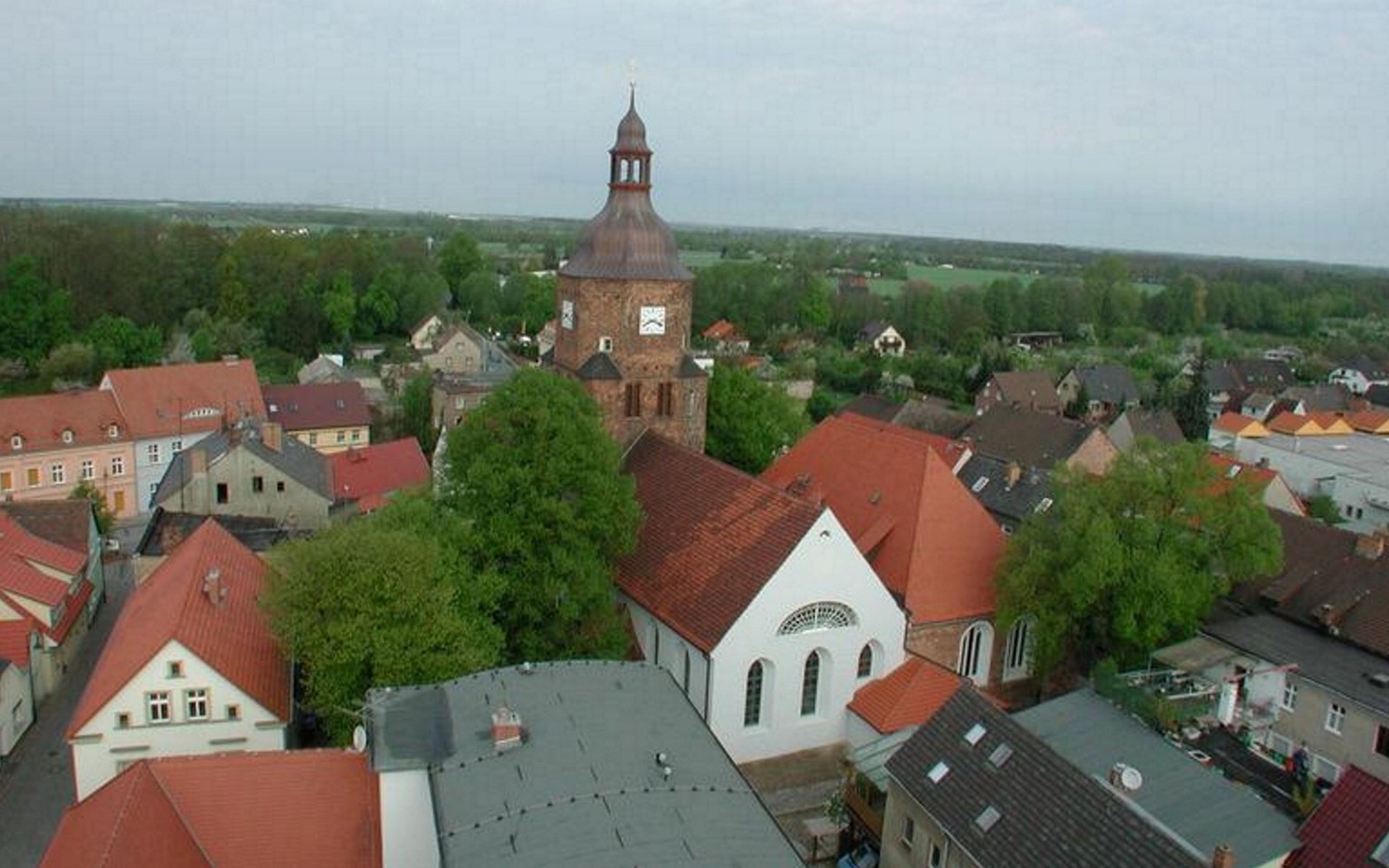 Am Rathaus Calau, im Hintergrund die Stadtkirche , Foto: terra press Berlin, Lizenz: terra press Berlin