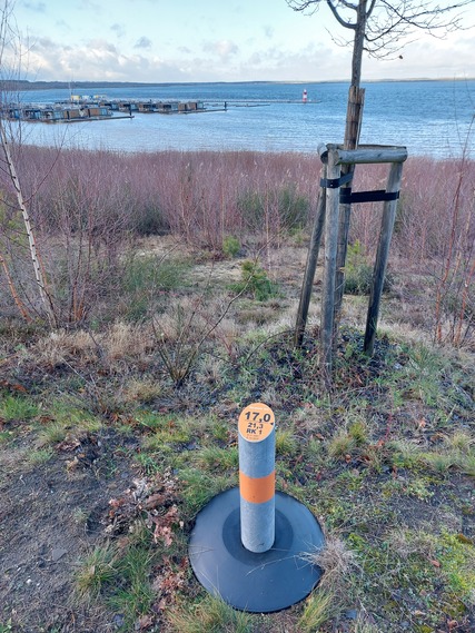 Kilometrierungspfoste am Geierswalder See, Foto: Zweckverband Lausitzer Seenland Sachsen