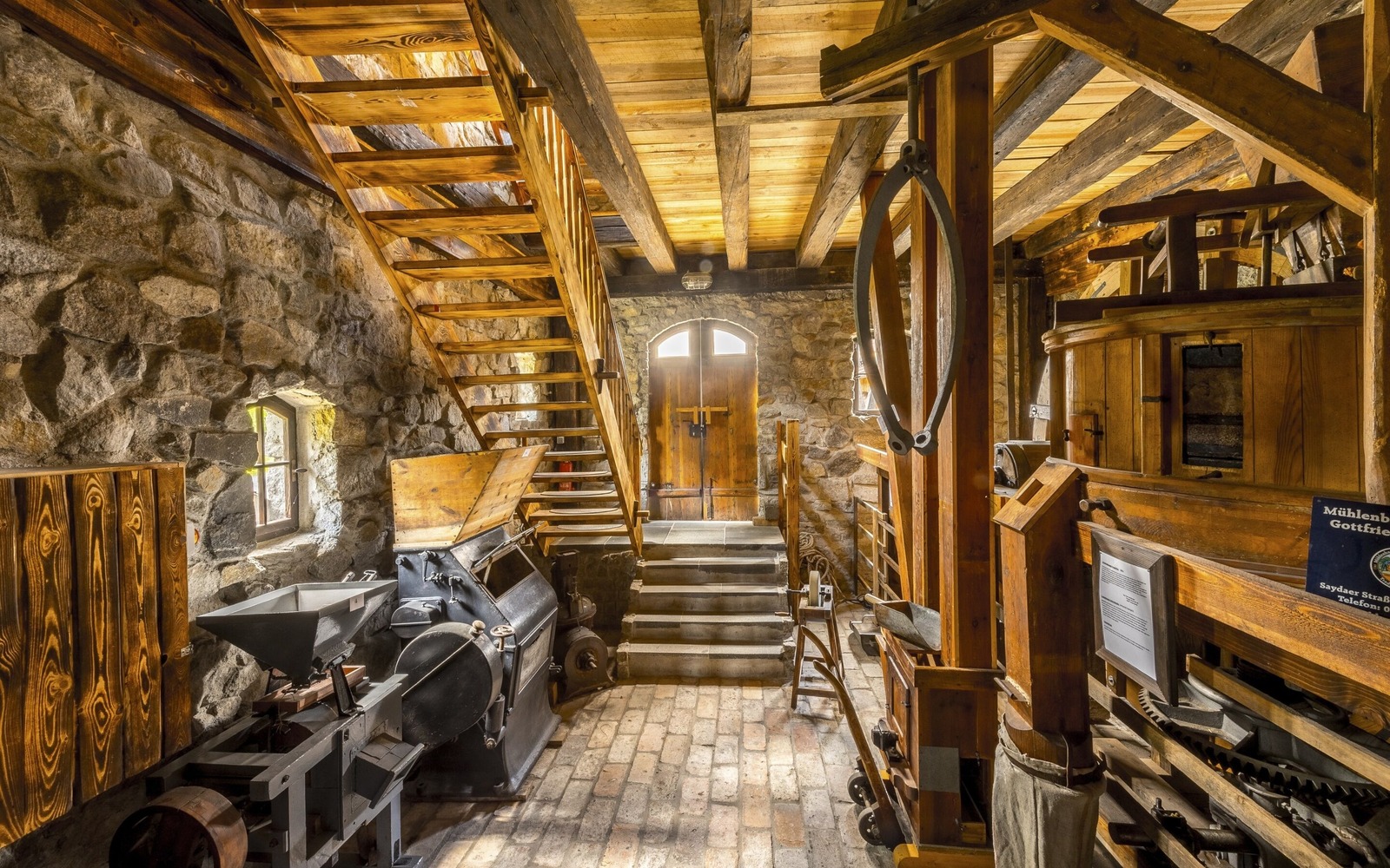 Für die leibliche Stärkung sorgen sowohl die Bauernstube mit den beliebten Buttermilchplinsen und Imbissangeboten als auch das Restaurant „Haus des Müllers".