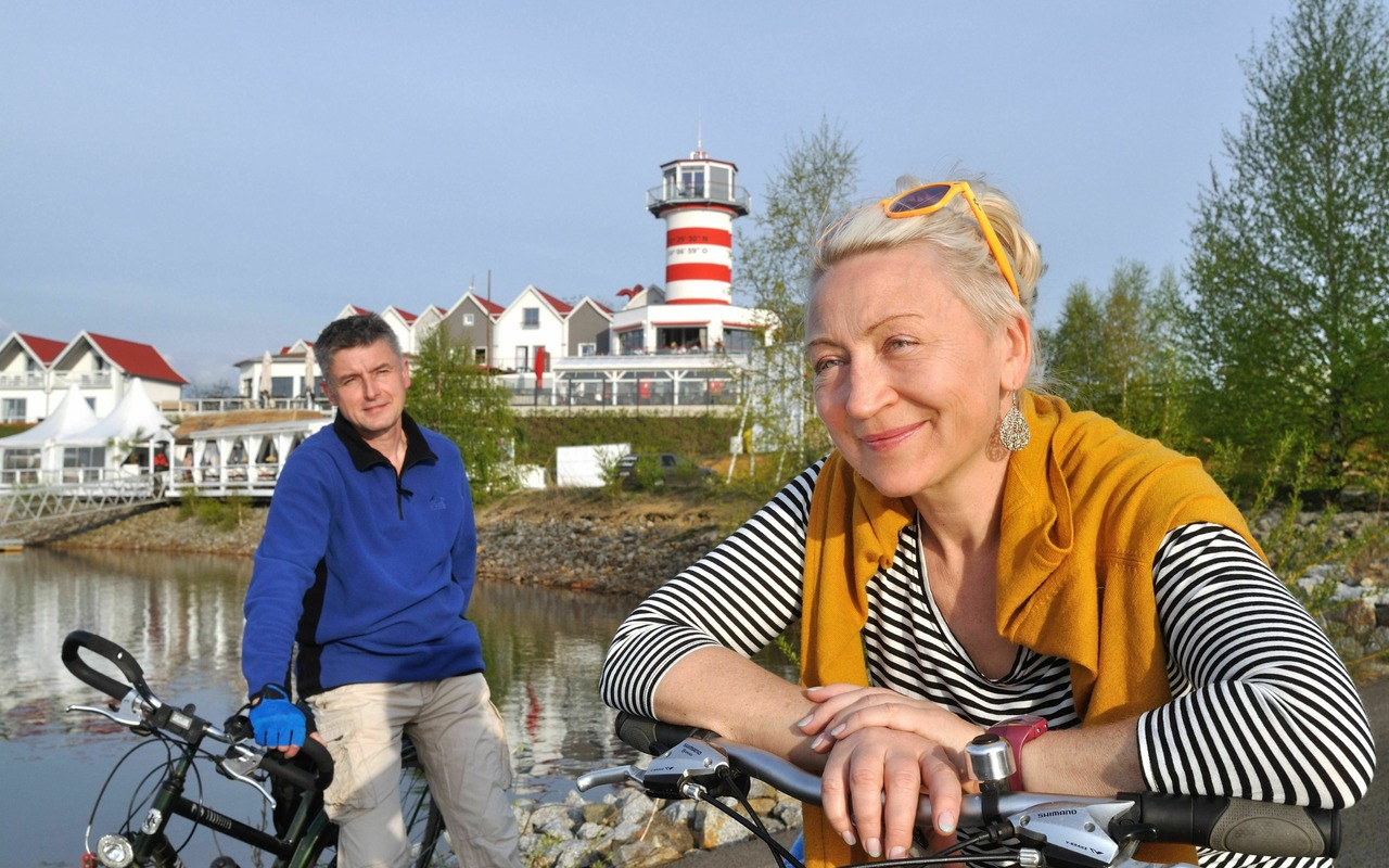 Auf dem 16 Kilometer langen Rundweg um den Geierswalder See gibt es für Radfahrer jede Menge zu entdecken. Auf dem Geierswalder See schwimmen nicht nur Boote, sondern Sie können auch in schwimmenden Ferienhäuser wohnen. Während der Radtour überqueren Sie drei Kanäle: Der Koschener Kanal ist die erste schiffbare Wasserstraße im Lausitzer Seenland, die den Geierswalder See mit dem Senftenberger See verbindet. Am Ufer des Sornoer Kanals liegt der Aussichtsturm „Rostiger Nagel", ein Wahrzeichen der Region. Dritter im Bunde ist der Barbara-Kanal, der den Partwitzer See an den Geierswalder See anschließt.