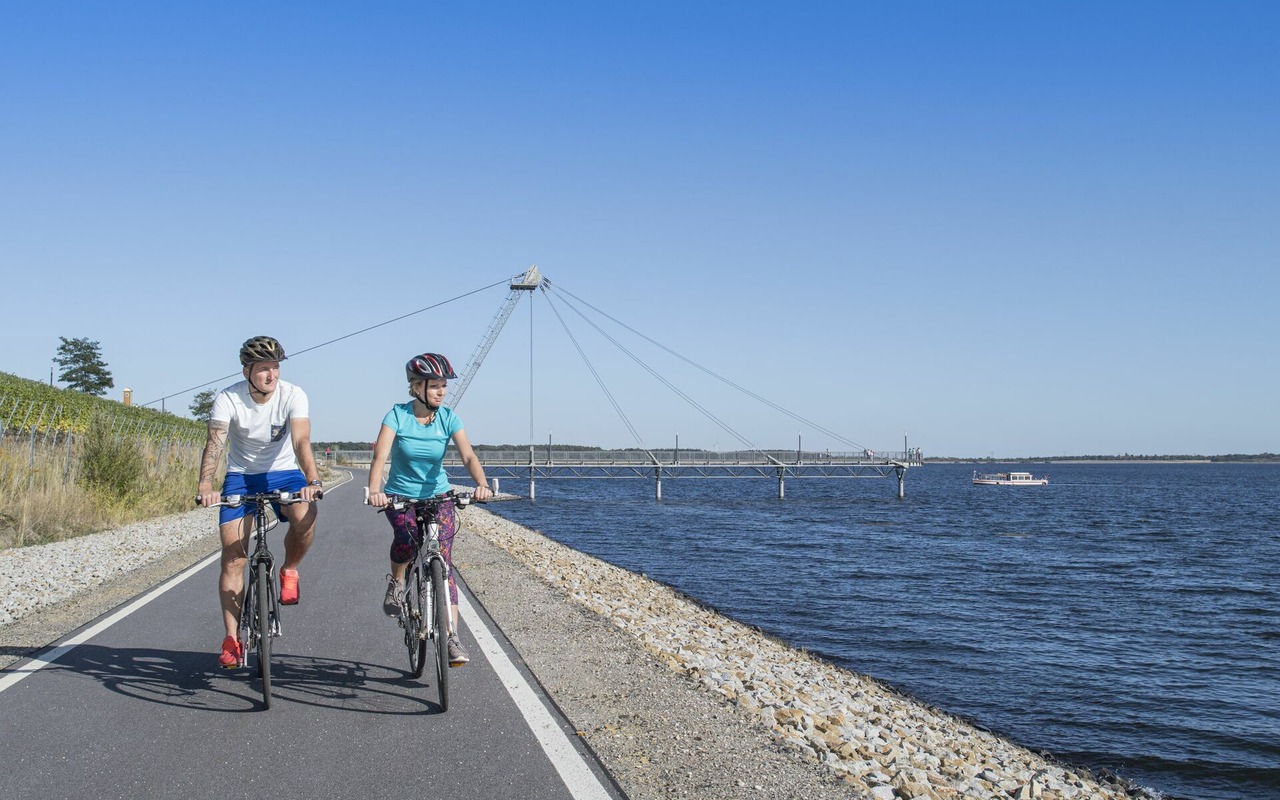 Radfahrer entlang des Seerundweges vom Großräschener See, Foto: Nada Quenzel