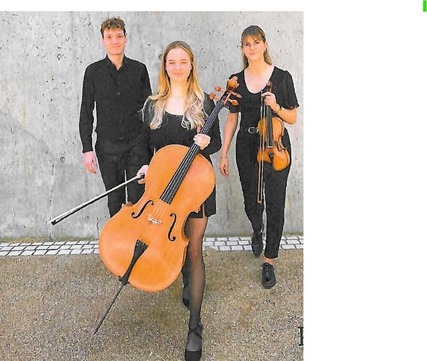 Am Klavier begleitet **Maximilian Schwarze** , an der Violine **Selina Bursch** und am Cello Helena Gonda.