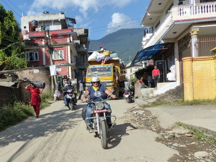 Bereits am ersten Tag musste Michi einige kritische Situationen meistern. Das gab ihr das nötige Selbstvertrauen, um auf eigene Faust das Kathmandutal zu erkunden. Gemeinsam mit einem einheimischen Freund überquerte sie die Bergkette des Shivapuri und besuchte ein Dorf, welches sie durch gesammelte Spenden nach dem Erdbeben mit Hilfsgütern versorgt hat. Die Menschen dort staunten nicht schlecht, hatten sie doch zuvor noch nie eine Ausländerin gesehen.