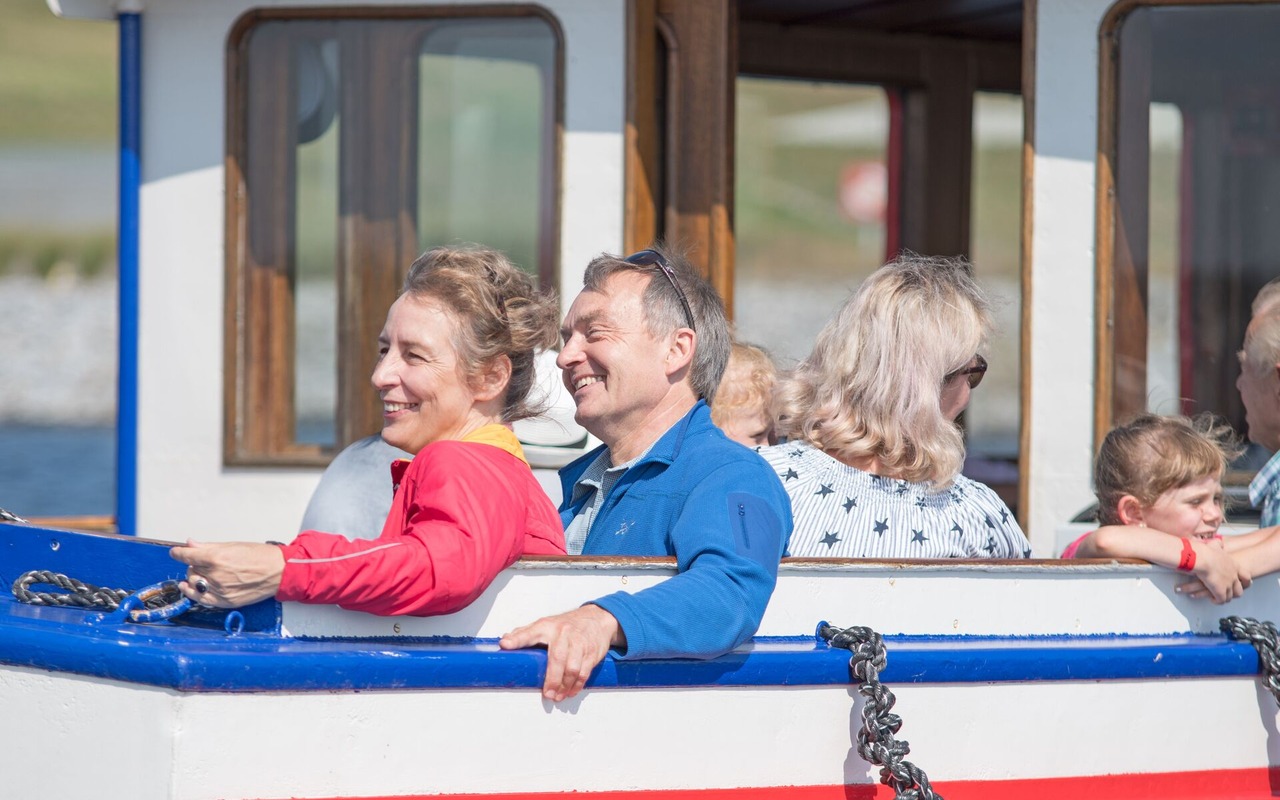 Mit dem Ausflugsschiff gemütlich über die neuen Seen schippern und die Aussicht aufs Wasser genießen.