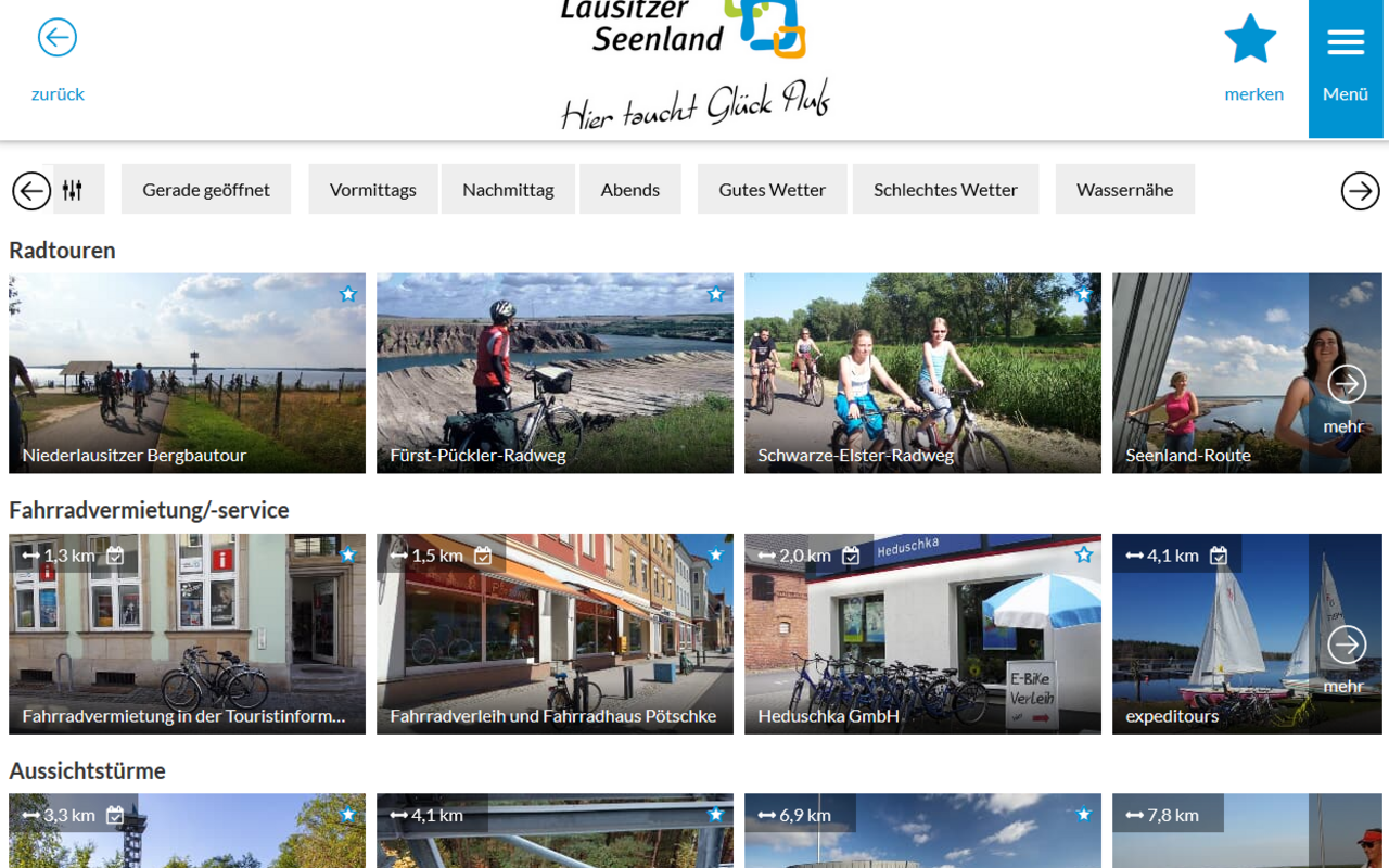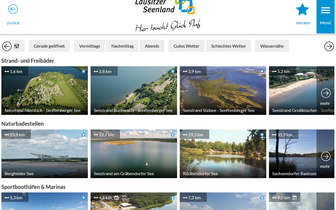 Die Informationen in „MiniLausitzerSeenland" kommen aus den zentralen touristischen Datenbanken des Landes Brandenburg. In diese pflegen der Tourismusverband Lausitzer Seenland e. V., die anerkannten Touristinformationen und Ansprechpartner in den Kommunen des Lausitzer Seenlandes seit Jahren die touristischen Angebote aus dem brandenburgischen und sächsischen Teil des Reisegebietes. Damit kommen noch mehr lokale touristische Angebote ins System - und erreichen damit den Gast vor Ort.