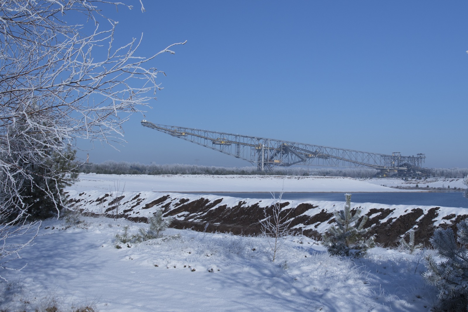 Besucherbergwerk F60 am Bergheider See im Winter, Foto; Kathrin Winkler
