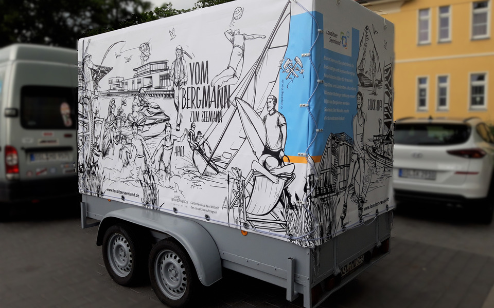 Als Verbandsmitglied hat der Modellbahn- und Puppenverein Neupetershain e.V. seinen Anhänger für Werbezwecke dem Tourismusverband Lausitzer Seenland e.V. überlassen. So wurde eine Anhängerplane dreiseitig mit den Illustrationen versehen. Der Verein fährt mit dem Anhänger deutschlandweit zu Messen und Präsentationen.