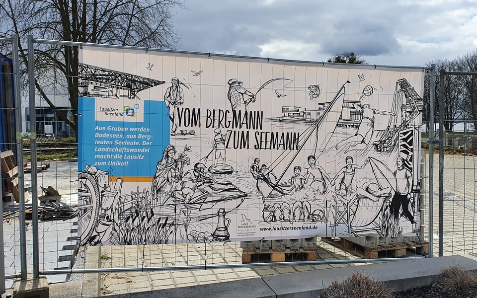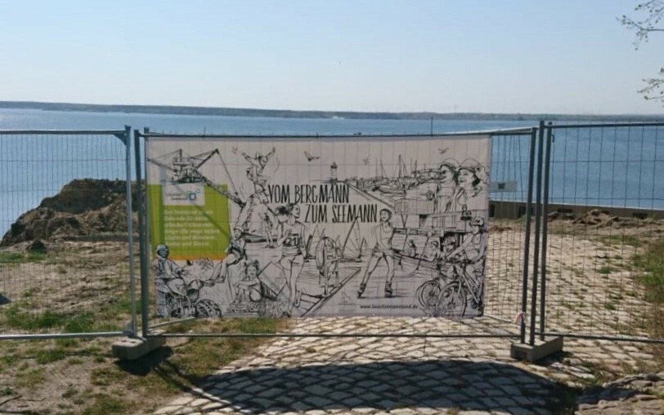 Banner an einer Baustelle am Sedlitzer See, Foto: TV LSL