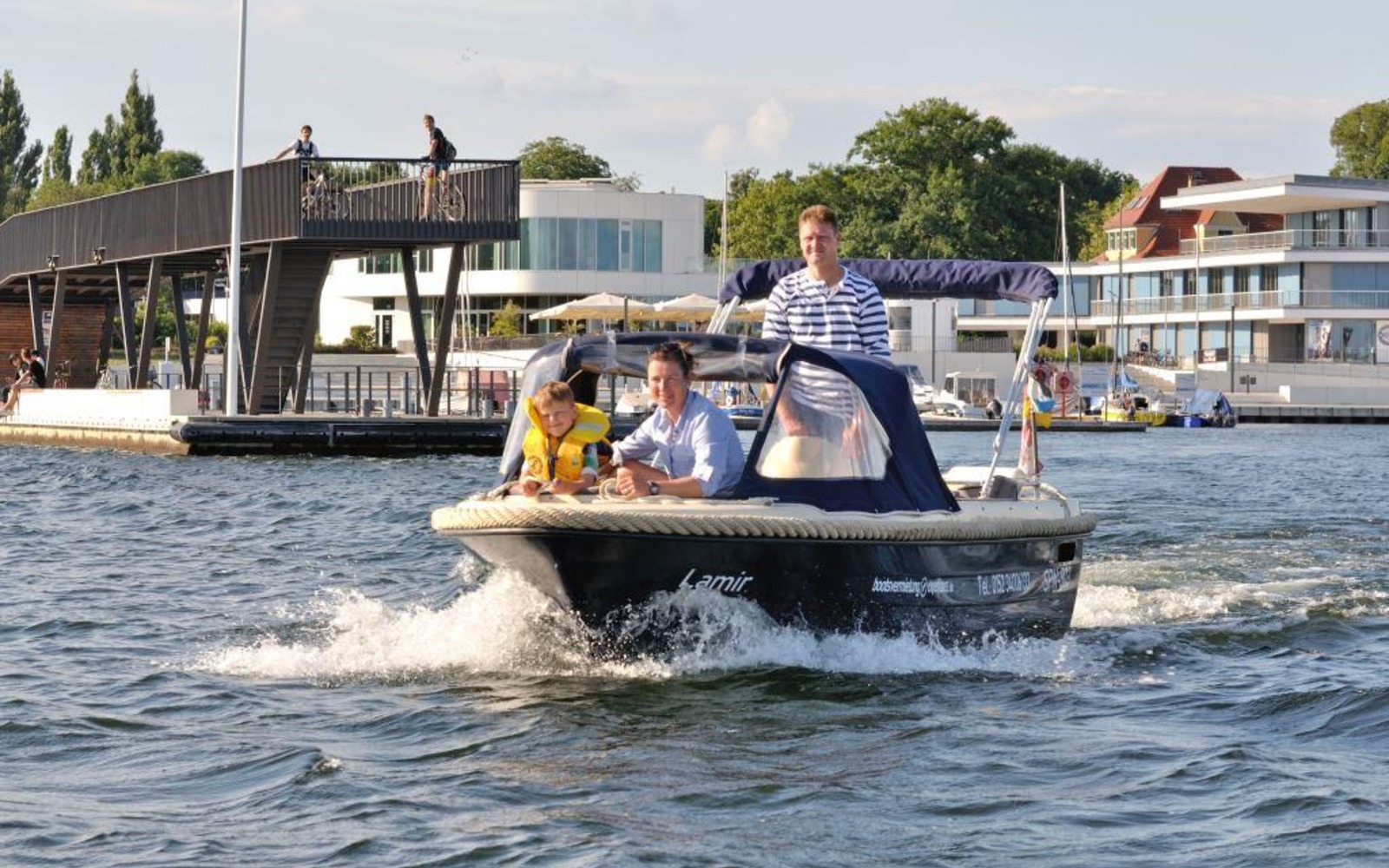 Motorboot vor dem Stadthafen Senftenberg Foto: Nada Quenzel