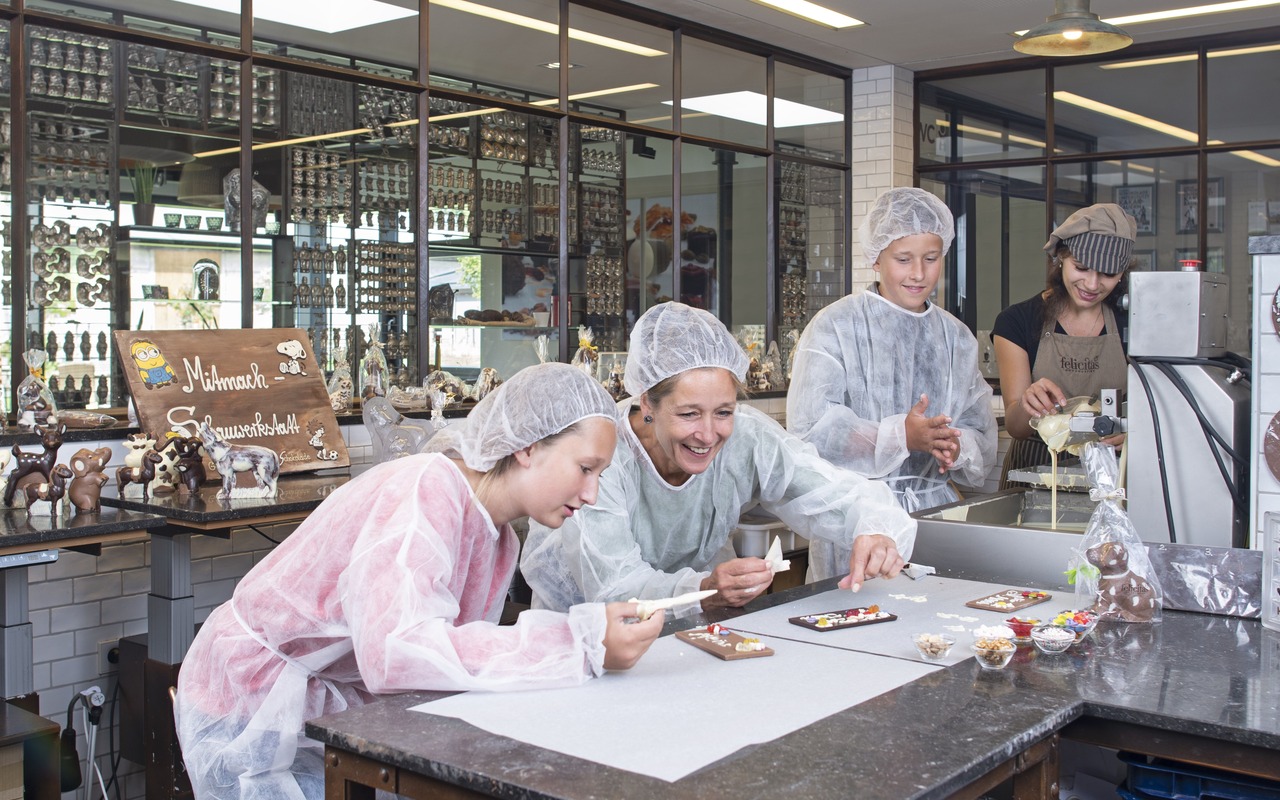 Schokokino, Verkostungen, Kreativwerkstatt: Die Confiserie Felicitas im Spremberger Ortsteil Hornow ist ein Paradies für Schokoladenliebhaber! Im SchokoLadenLand erhalten Familien exklusive Einblicke in das alte Handwerk des Chocolatiers und können beim Gestalten von Schokoladenrohlingen ihrer Kreativität freien Lauf lassen. Für Gruppen ab fünf Personen gibt es weitere individuelle Angebote – von Führungen und Verkostungen bis hin zum anspruchsvolleren Gießen eigener Schokoladenfiguren. Im Felicitas-Schoko-Café genießen Besucher frische Köstlichkeiten aus der hauseigenen Konditorei. Anschließend können Kinder auf dem zugehörigen Abenteuerspielplatz toben und sogar im hauseigenen Streichelzoo die zutraulichen Ziegen, Kaninchen und Esel besuchen! Ein besonderes Angebot speziell für Kindergarten- und Schulgruppen ist das vierstündige Mitmachprogramm „Rund um Schokolade und gesunde Ernährung“ in der Erlebnisscheune.