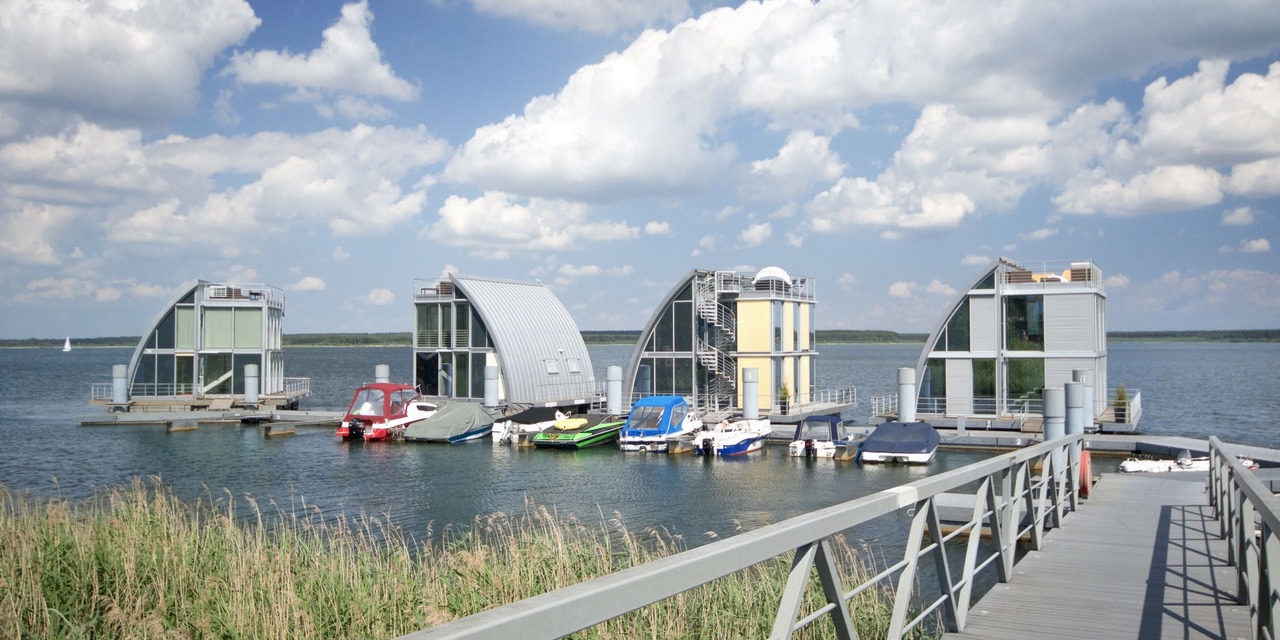 Schwimmende Ferienhäuser auf dem Geierswalder See