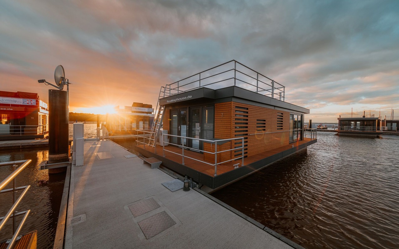2006 wurde bereits das erste schwimmende Haus auf dem Partwitzer See eingeweiht. Es wurde als Referenzanlage für eine ganze Siedlung schwimmender Häuser errichtet. Das Haus auf dem Partwitzer See ist kubistischminimalistisch gehalten und vollständig holzverkleidet. Das schwimmende Ferienhaus bietet Platz für 2 bis 3 Personen. Flur, Bad und die voll ausgestattete Wohnküche mit direktem Ausgang zum großzügigen blickgeschützen Sonnendeck bilden das Erdgeschoss. Der Wohnraum mit gemütlicher Sitzecke und Zugang zum Oberdeck (Balkon) sowie das Schafzimmer mit Panoramafenster befinden sich im Obergeschoss. Beim leichten Schaukeln der Wellen kann man den  Sonnenuntergang auf der Terasse genießen und entspannen.