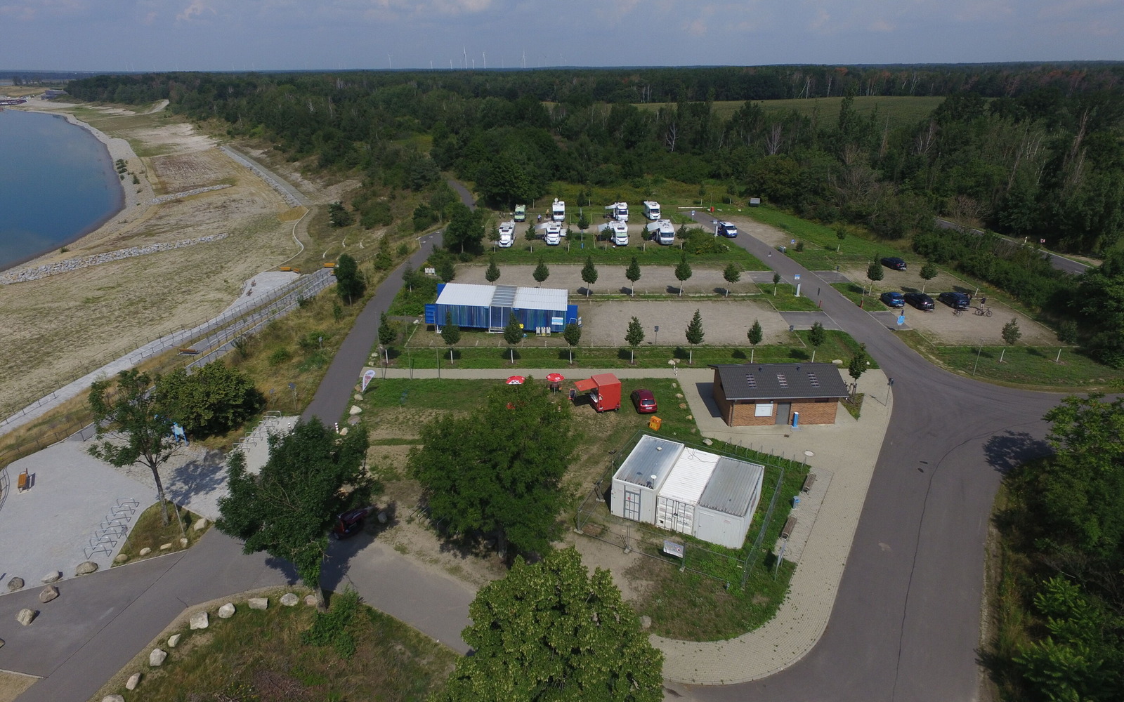 Wohnmobilstellplatz am Parkplatz Seestrand Lieske, Foto: Zweckverband LSB/Drohne, Lizenz: Zweckverband LSB