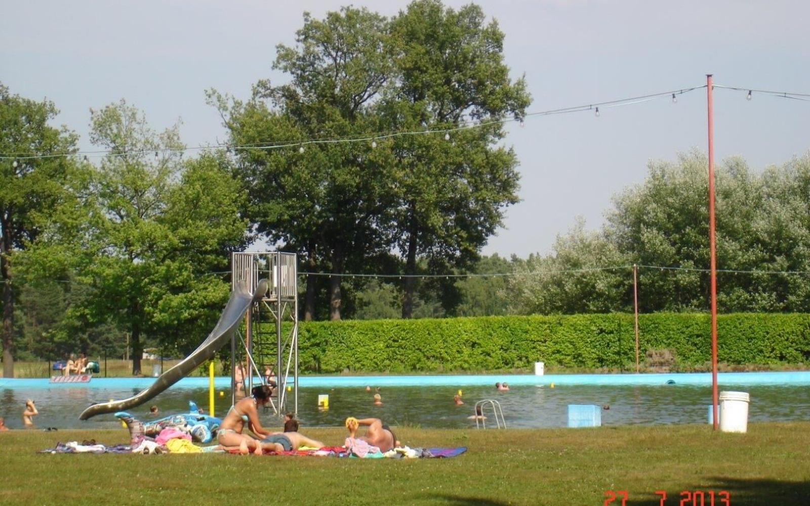 The tent and campsite at the forest bathing area is an idyllic island where you can relax and unwind surrounded by forests and meadows. In addition to a large meadow for tents, the complex has twelve parking spaces for camper vans and caravans. These parking spaces are equipped with water, electricity and sewage connections. In addition to bathroom facilities, campers and bathers at the swimming pool also have access to a covered barbecue area and a lounge including a kitchen. In addition to swimming, paddling and slides in the open-air swimming pool, the complex offers many leisure facilities for children and adults, including a bouncy castle and sports activities, such as beach volleyball or table tennis.