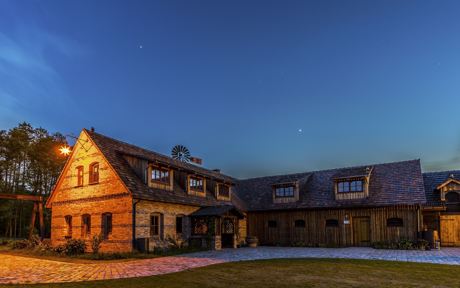 The Restaurant Haus des Müllers / Dom młynka on the adventure farm of Krabat-Mühle Schwarzkollm serves Sorbian and regional cuisine in a special atmosphere. The restaurant is located in a building on the farm built with bricks from a former Schwarzkollm restaurant. There is seating for about 45 people in the dining area and another 45 in the beer garden.
