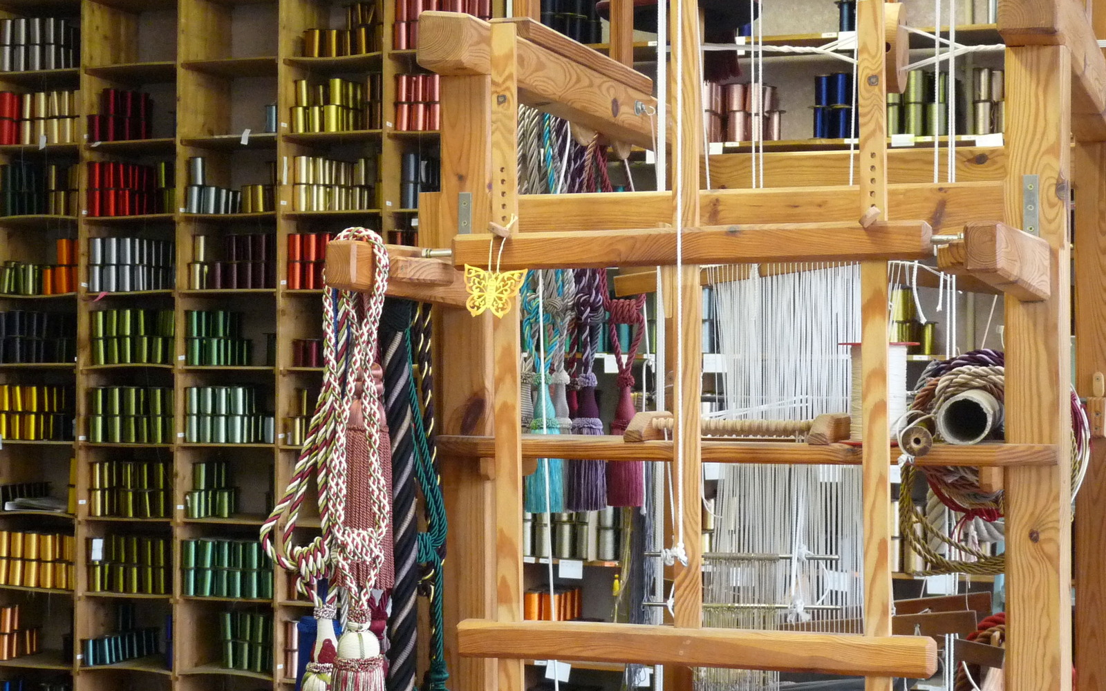 The manufactory makes traditional and modern trimmings, such as tassels, braids, fringes and textile cables using historic machinery as well as by hand. Traditional craft is brought back to life and presented to visitors. The trimmings made on site are available for sale at the factory shop, and guests can learn about the craft in guided tours of the manufactory. Tours must be booked in advance.