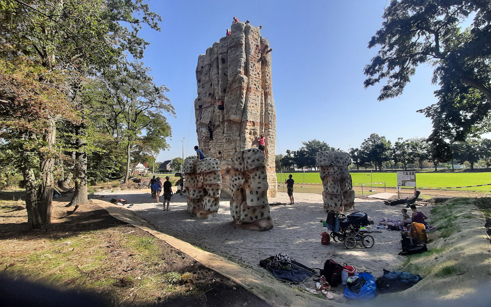 The tower, which is modelled on the rocks in Saxon Switzerland, offers all facets of climbing in Saxon difficulty grades III to IXa on a total of 22 climbing routes. The routes are described on two boards and on the association's website. In addition, the tower is flanked by 3 bouldering rocks. Here you can climb without a rope.