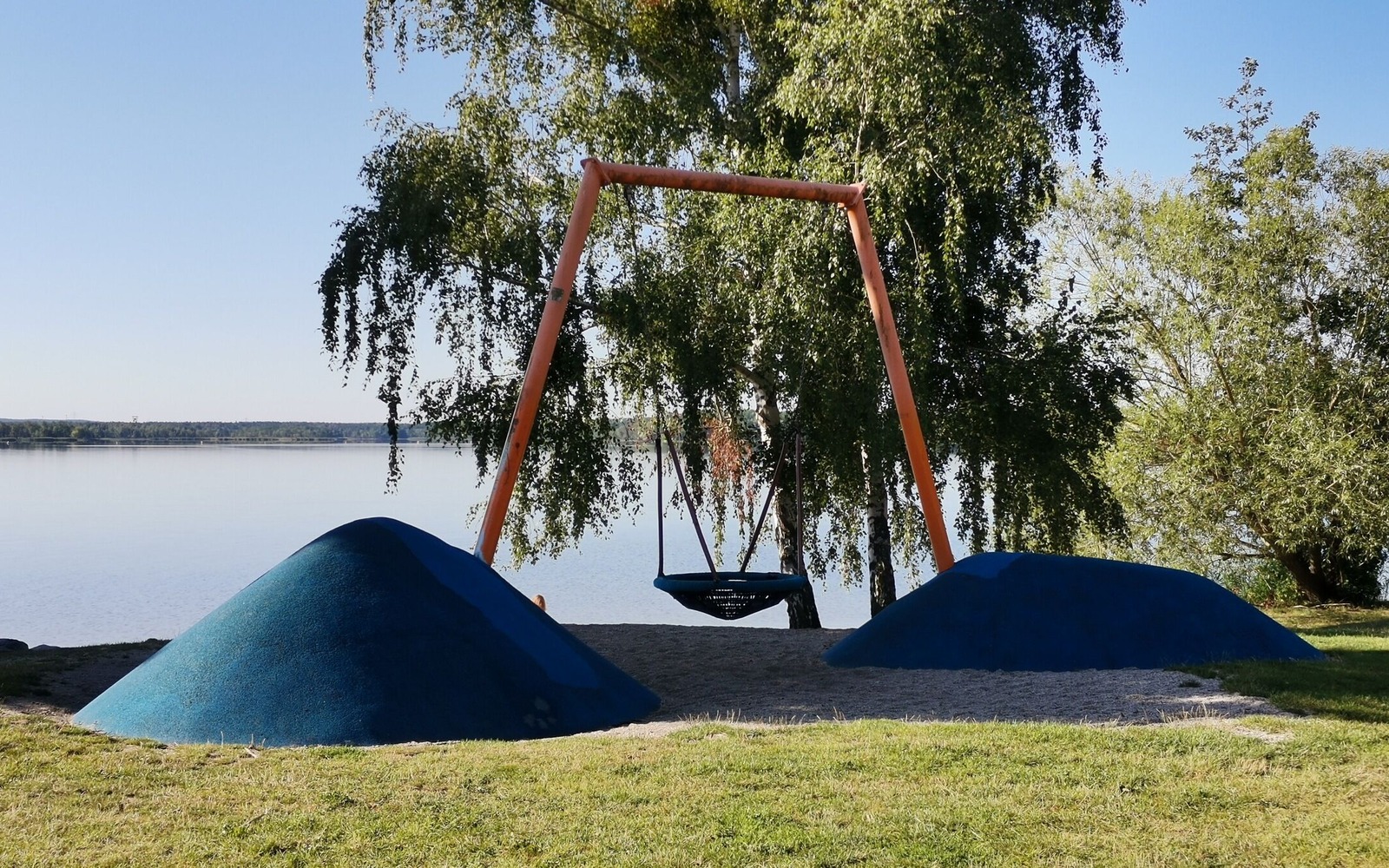 Here, young and old captains up to the age of 12 can drop anchor, disembark and explore the adventure course directly adjacent to the town harbour. Since 25 April 2013, children have been able to play and let off steam in the immediate vicinity of Senftenberg town harbour. Various blue elements have been used to create a playground that not only offers variety for children, but also provides quality time for adults. A sandpit, slide, swing and trampoline are of course a must - and all with a view of the landing bridge.