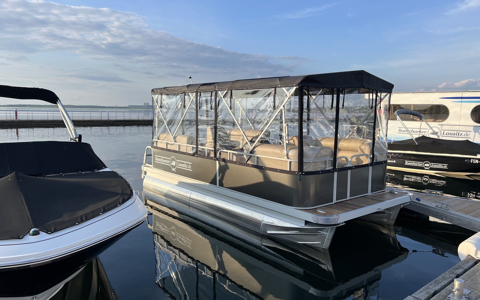 Licence-free pontoon boat "STAR Cruiser", Foto: Bootcharter Lausitz, Lizenz: Bootcharter Lausitz