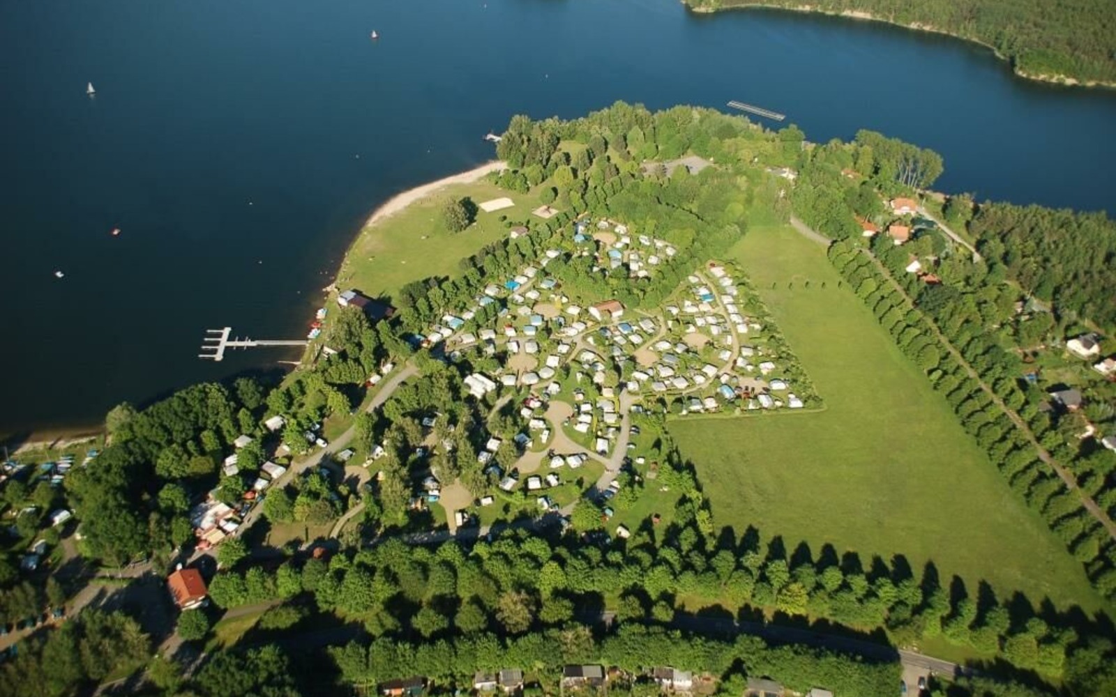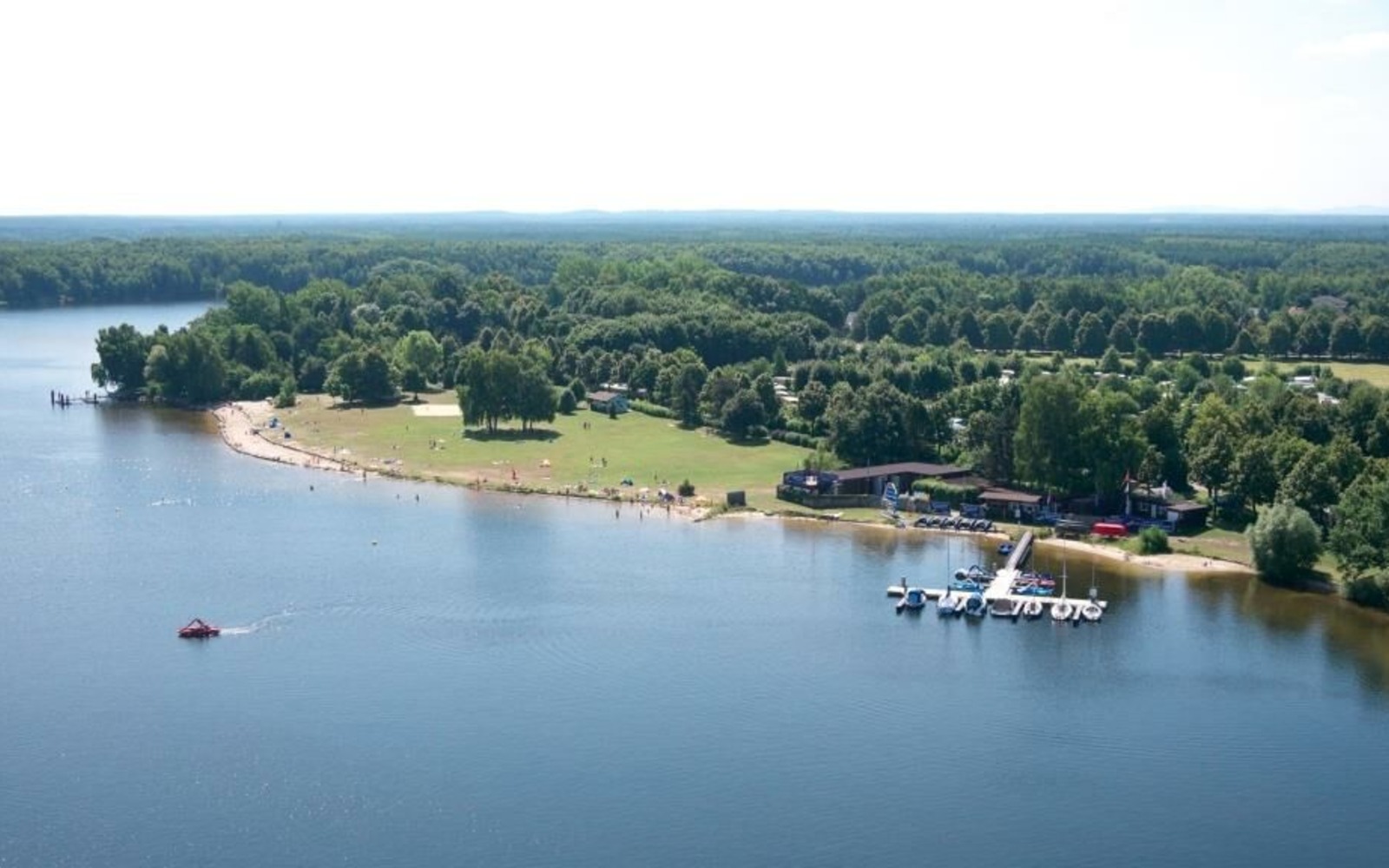 In addition, there is a watersports school and sailing harbour on the lakeside at Niemtsch. The Santa Barbara passenger boat stops here on its circular tour of the lake. A boat rental service and the attached five-star campsite complete the range of facilities.